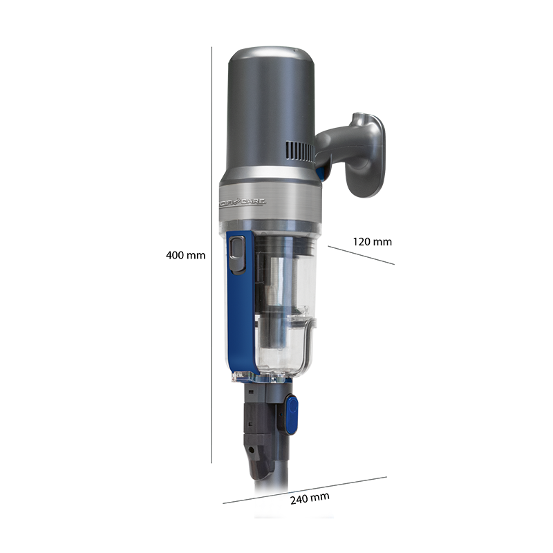 Comprend un tuyau d’aspiration flexible et extensible (environ 40 à 150cm) pour les zones difficile à atteindre, un système de protection électronique sur les surcharges et 4 voyants de contrôle LED qui informent sur l’état de charge.