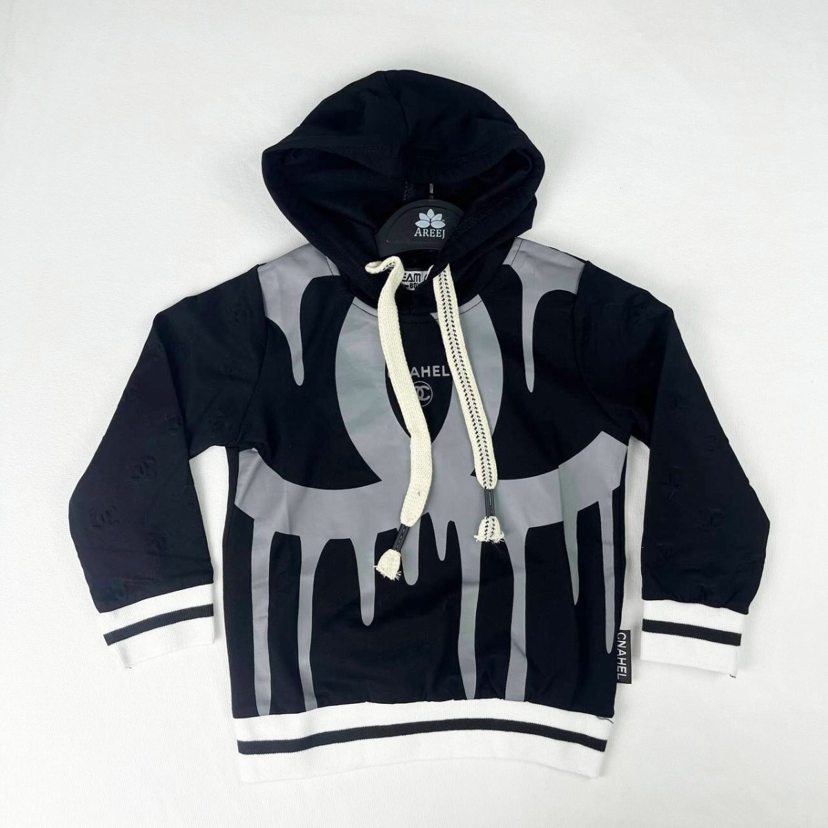 - Motif Moderne : Ce pull se distingue par son imprimé audacieux en noir et gris sur le devant, apportant une touche tendance et cool à la tenue de votre bébé. 🎨