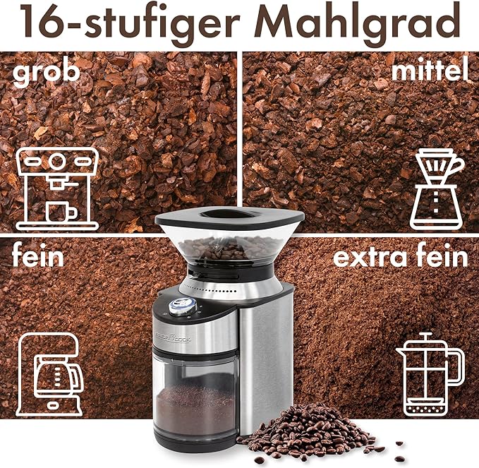 درجة الطحن قابلة للتعديل في 16 خطوة (خشن إلى ناعم للغاية)