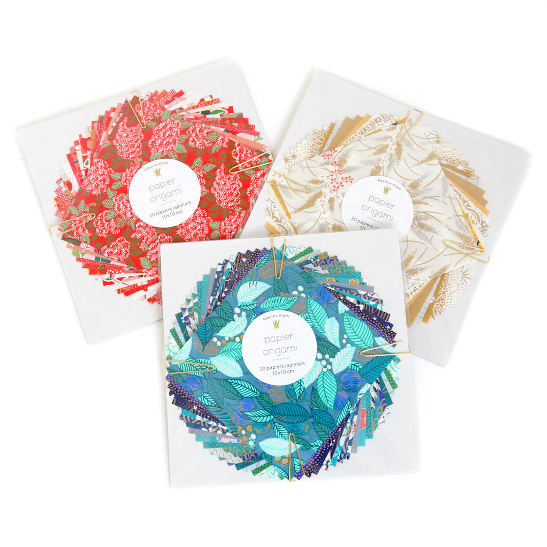 Ce joli set contient 20 carrés de papiers japonais (washi, yuzen, chiyogami) pour l’origami de 10cm de côté, dans des tons froids de bleus, de bleu turquoise, de vert, de vert d’eau, de bleu nuit et de violets de la gamme Turquoise. Ces carrés de 10 cm de côté sont parfaits pour réaliser des origami […]