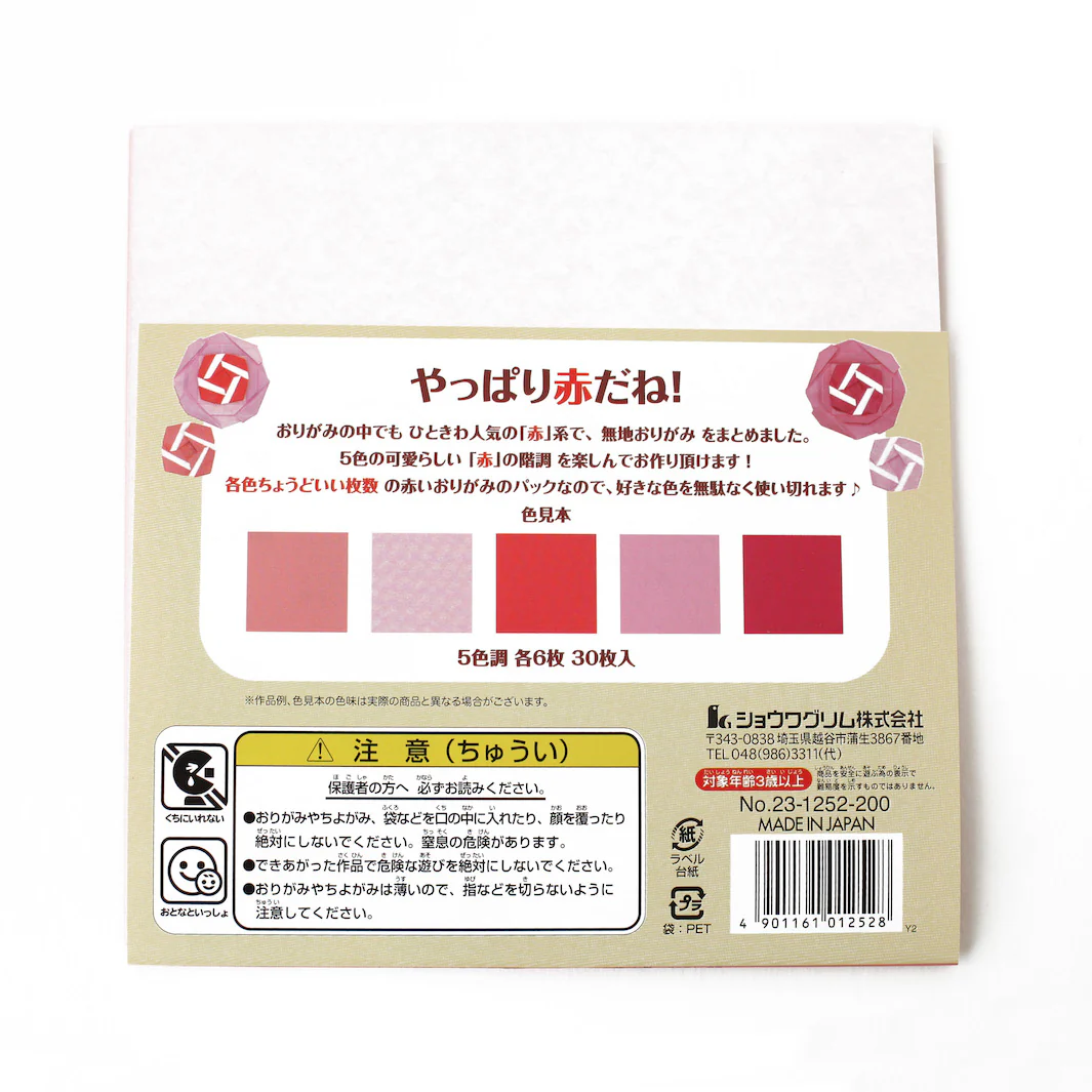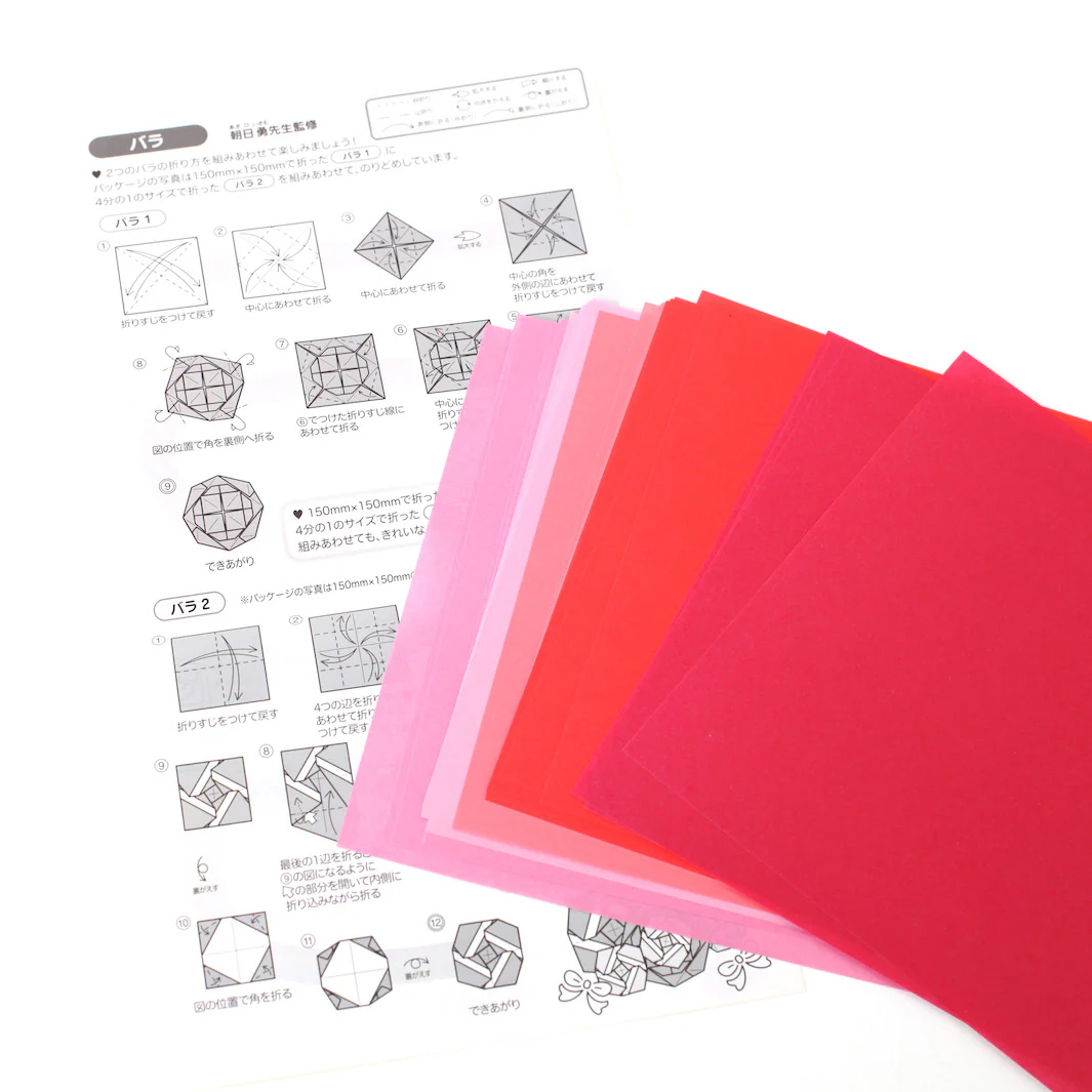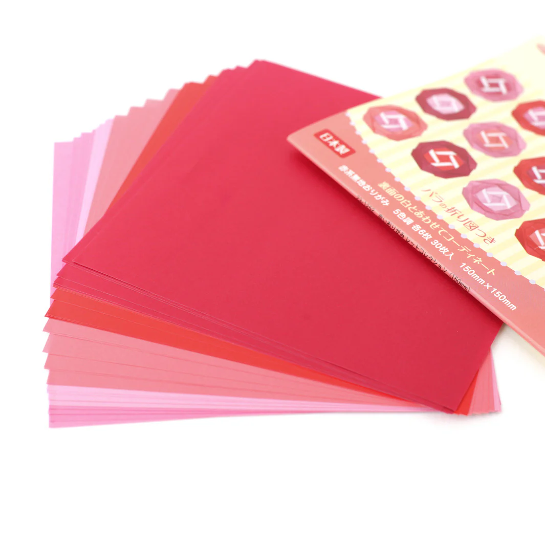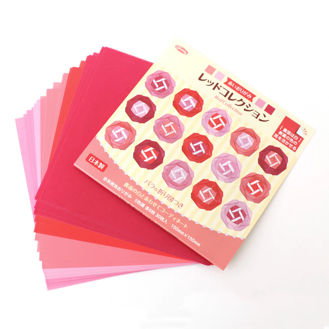 30 Papiers Origami Roses, Rouges – 5 couleurs – 15 x 15 cm