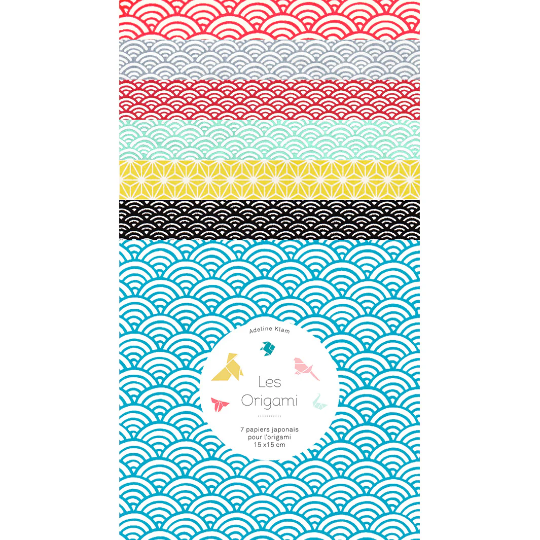 Ce joli set de 7 carrés de papiers japonais (washi, yuzen, chiyogami) pour l’origami de 15cm de côté, dans des tons variés de rouges, de jaunes, de bleus et de noirs de la gamme « Koinobori » (W4) a été imaginé par Adeline.