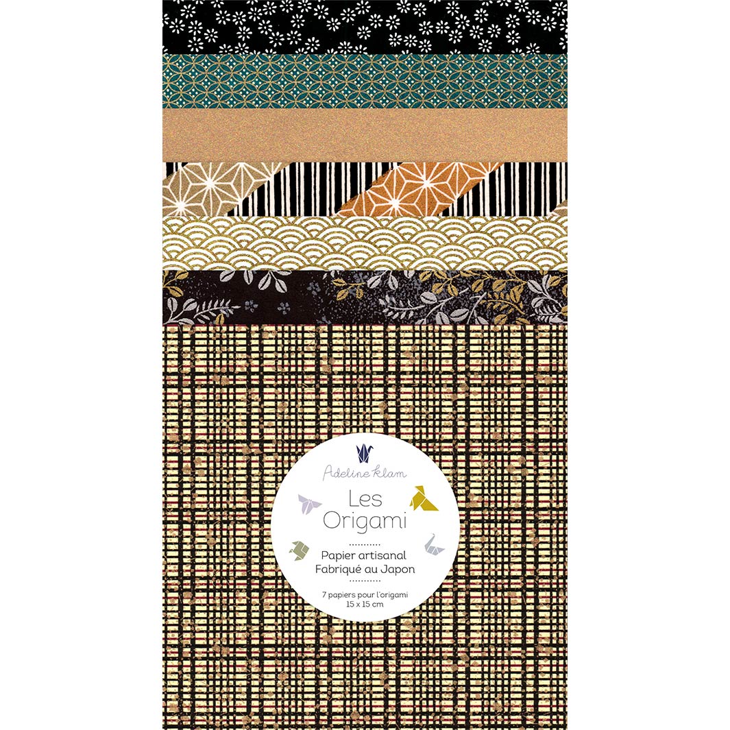 7 Papiers Origami – 15 x 15 cm – Noir, Bleu Canard, Or et Argent – Haori – S2