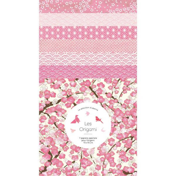 Ce joli set de 7 carrés de papiers japonais (washi, yuzen, chiyogami) pour l’origami de 15cm de côté, dans des tons rose pâle, rose acidulé et blancs de la gamme « Rose » (C) a été imaginé par Adeline.