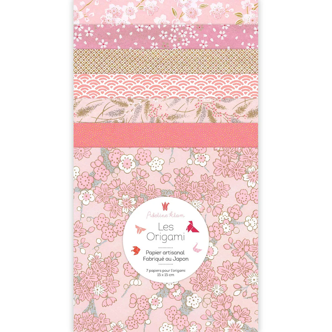 7 Papiers Origami – 15 x 15 cm – Rose Clair et Moyen, Or et Argent – Sakura – C6