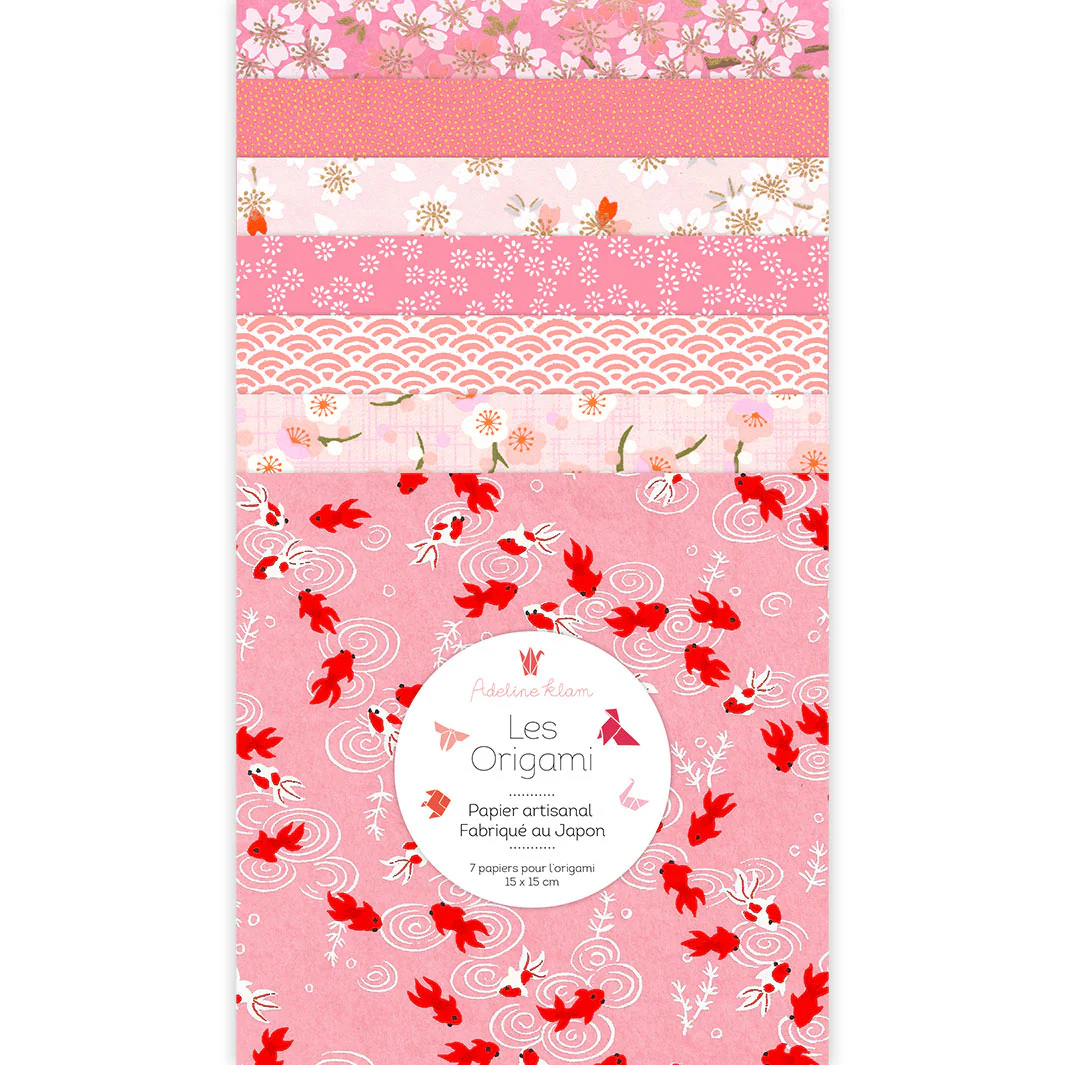 Ce joli set de 7 carrés de papiers japonais (washi, yuzen, chiyogami) pour l’origami de 15cm de côté, dans des tons de rose clair, de rose moyen, de corail et de rouge de la gamme « Bubble Gum » (C8) a été imaginé par Adeline.