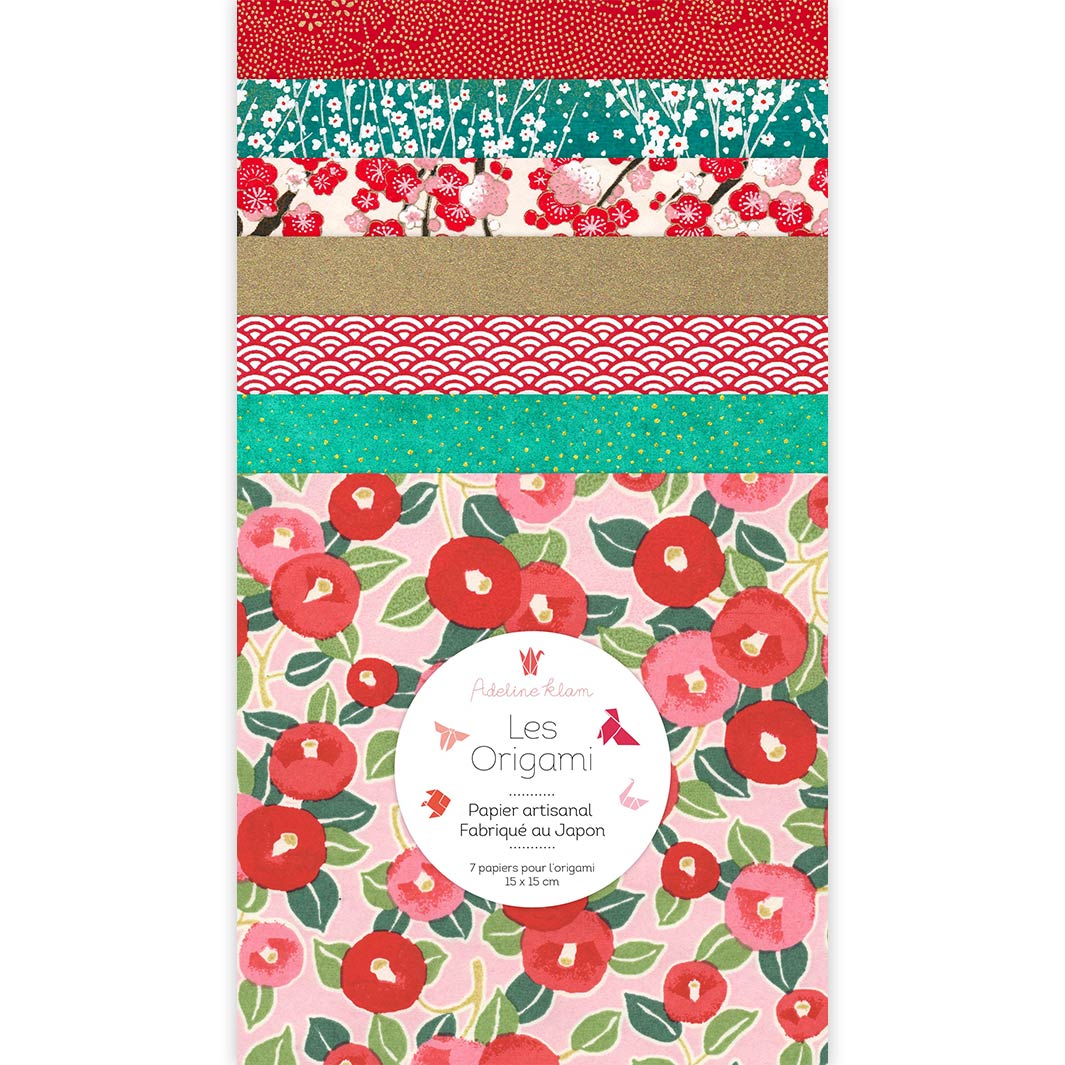Ce joli set de 7 carrés de papiers japonais (washi, yuzen, chiyogami) pour l’origami de 15cm de côté, dans des tons de rouge, de bleu canard, de rose et de doré de la gamme « Santa Claus » (E1) a été imaginé par Adeline.