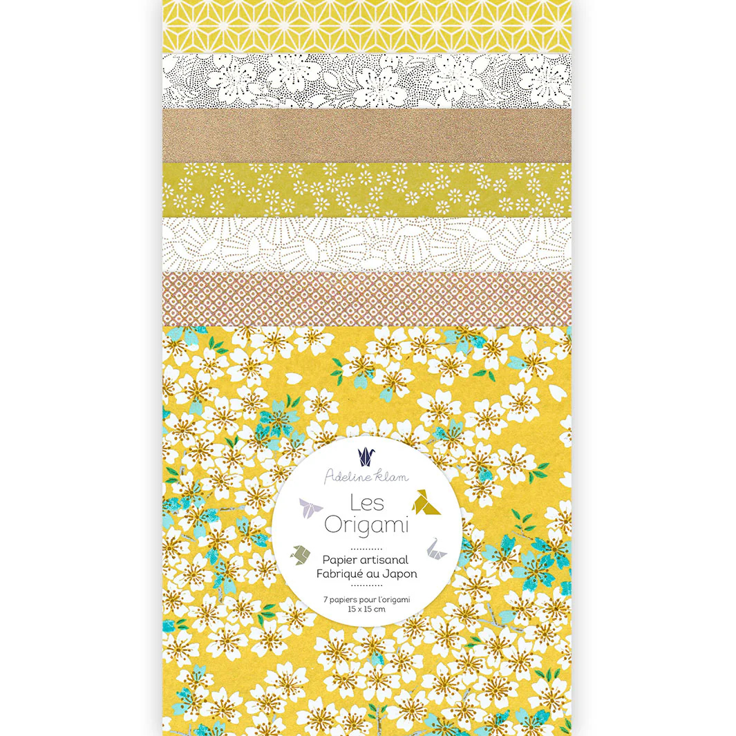 7 Papiers Origami – 15 x 15 cm – Vert Acidulé et Or – Moisson – I7
