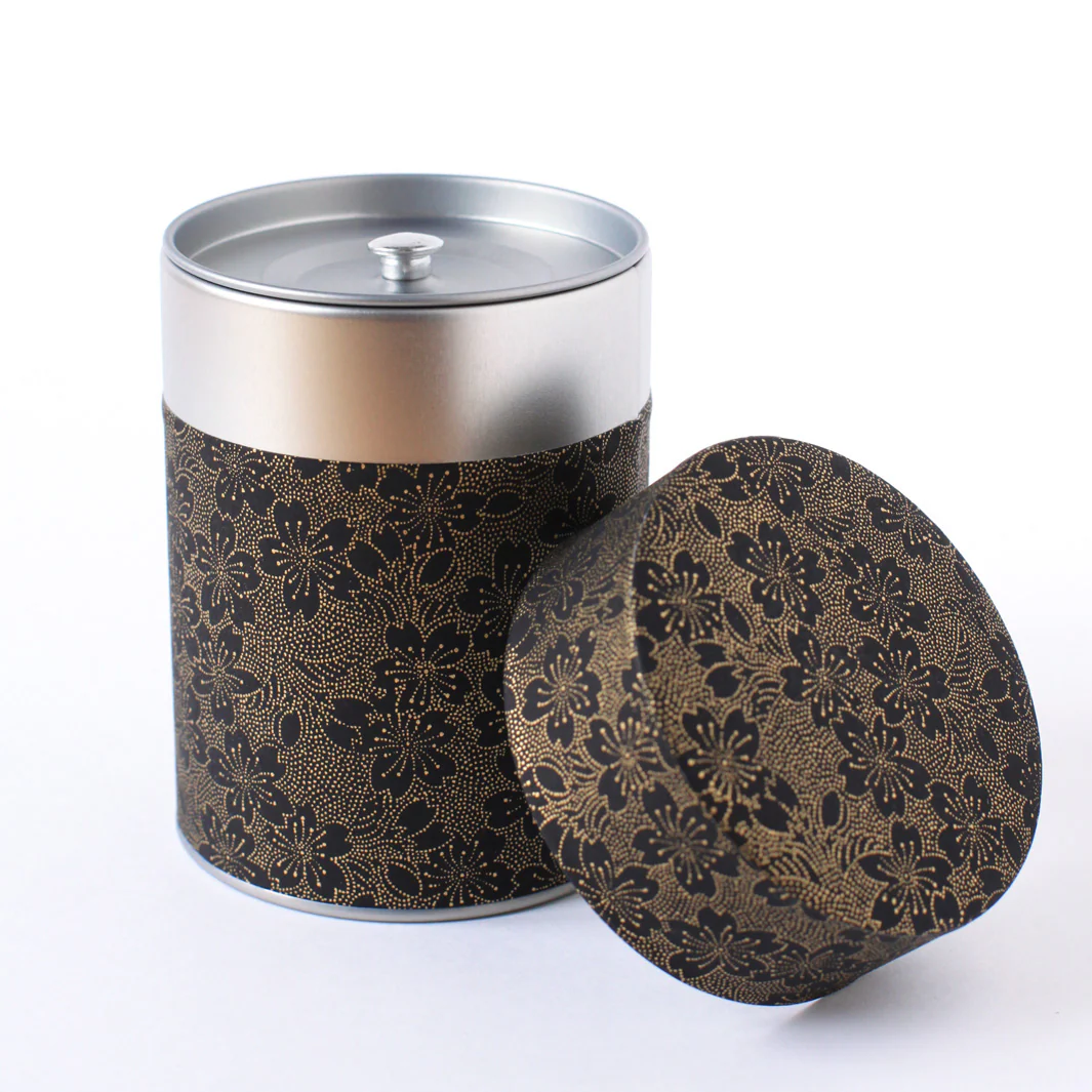 Jolie boîte à thé originale tapissée de papier japonais aux motifs de fleurs en pointillés dorées sur fond noir sera parfaite avec son double couvercle pour conserver votre thé ou votre tisane de manière hermétique et décorative.