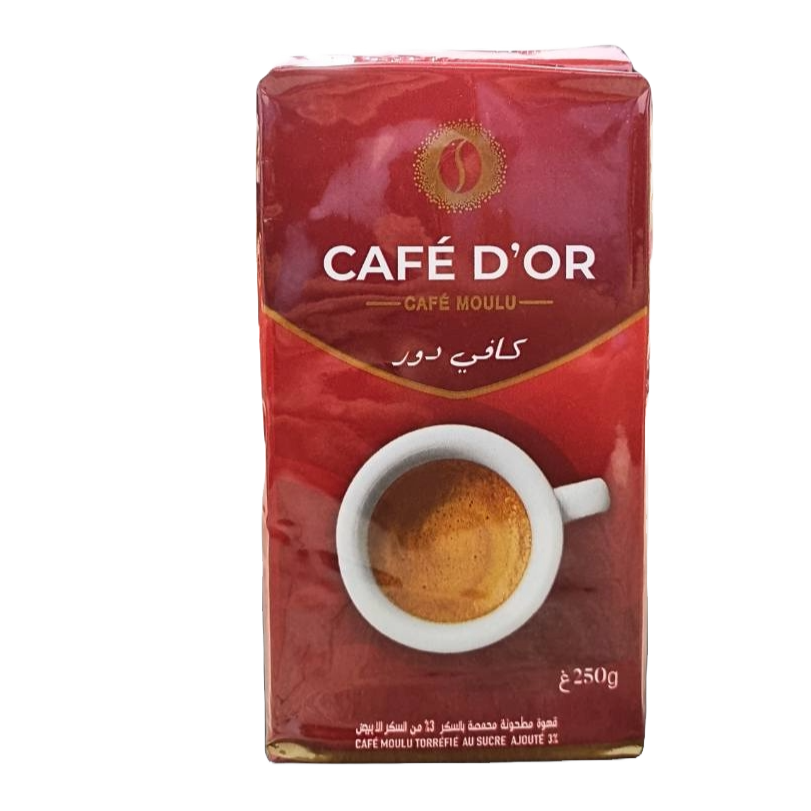 Description du produit : Le Café D’Or est un café moulu de haute qualité, idéal pour préparer des cafés riches et aromatiques à tout moment de la journée.