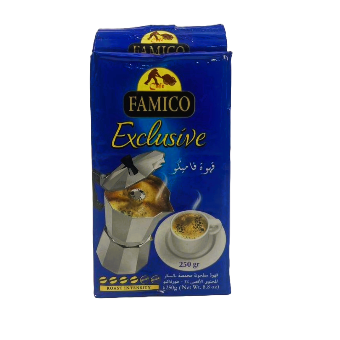 Découvrez le café Famico Exclusive, un café moulu de qualité supérieure, spécialement torréfié pour offrir une expérience gustative riche et intense.