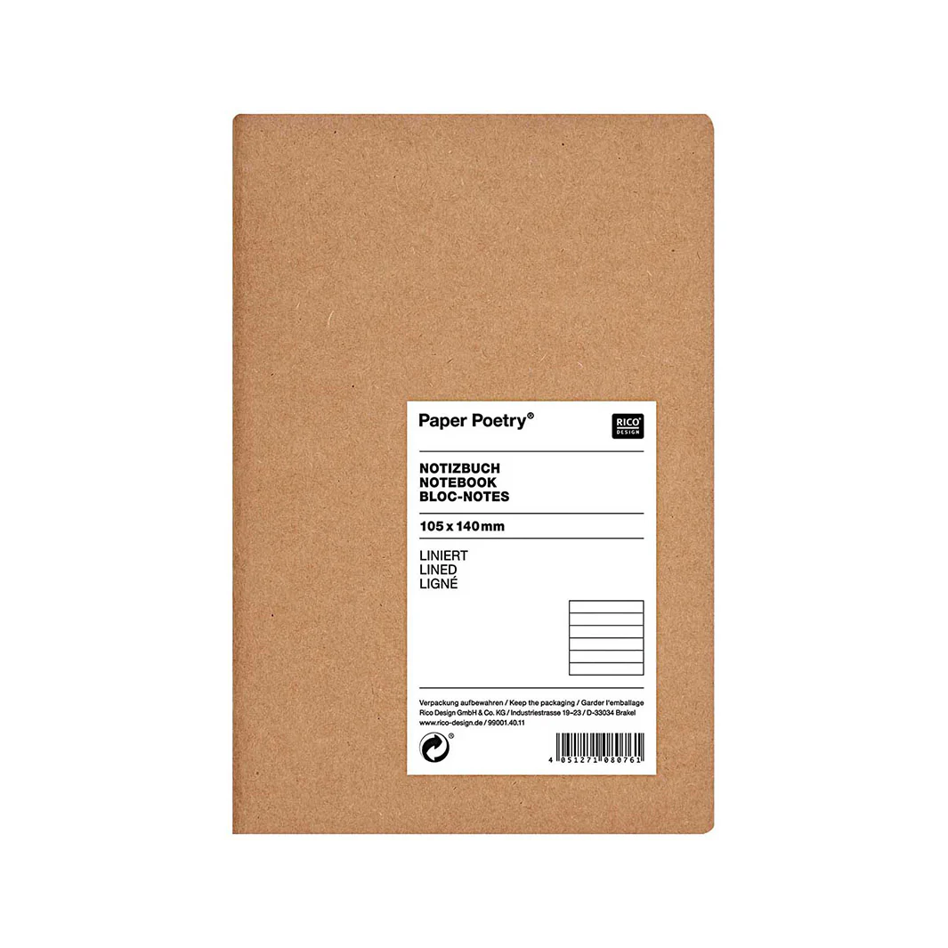 - Caractéristiques : couverture souple cartonnée en kraft, pages blanches et lignées, 40 feuilles soit 80 pages