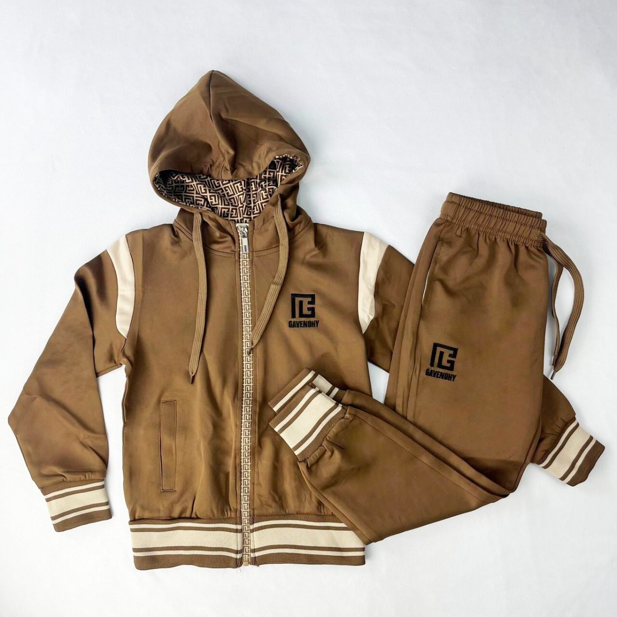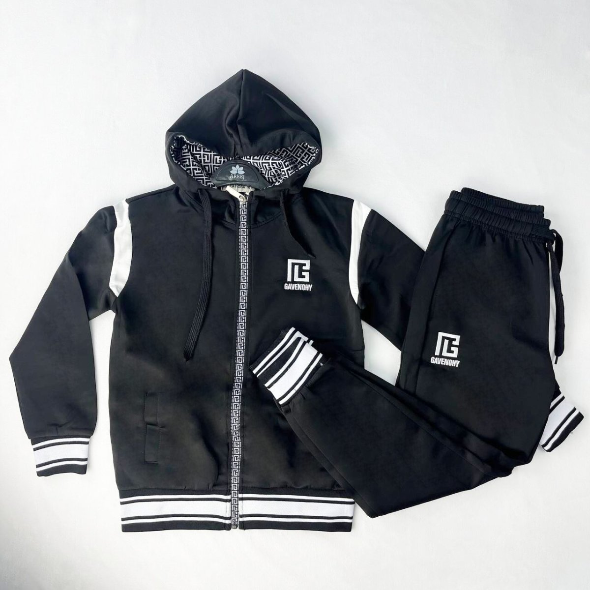 - Style élégant et moderne ⚡ : Arborant un design noir sobre avec des accents blancs, cet ensemble se distingue par son allure élégante et contemporaine. Le logo “GAVENCHY” apporte une touche de sophistication, tandis que la capuche doublée de motifs graphiques ajoute une note de dynamisme.