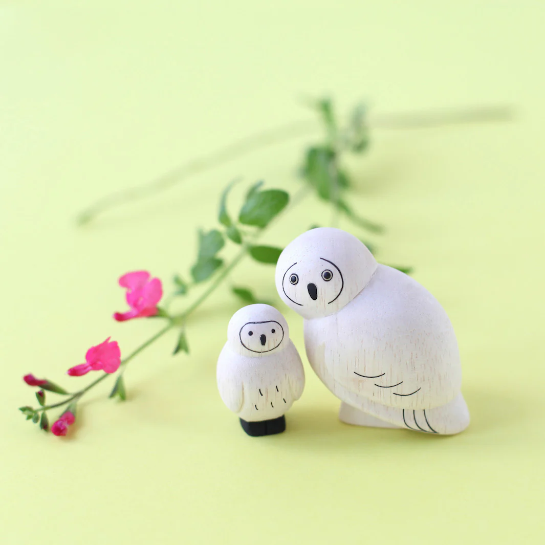 Adorable petite famille de chouettes/hiboux en bois de la série d’animaux Pole Pole de la marque japonaise T-Lab.
