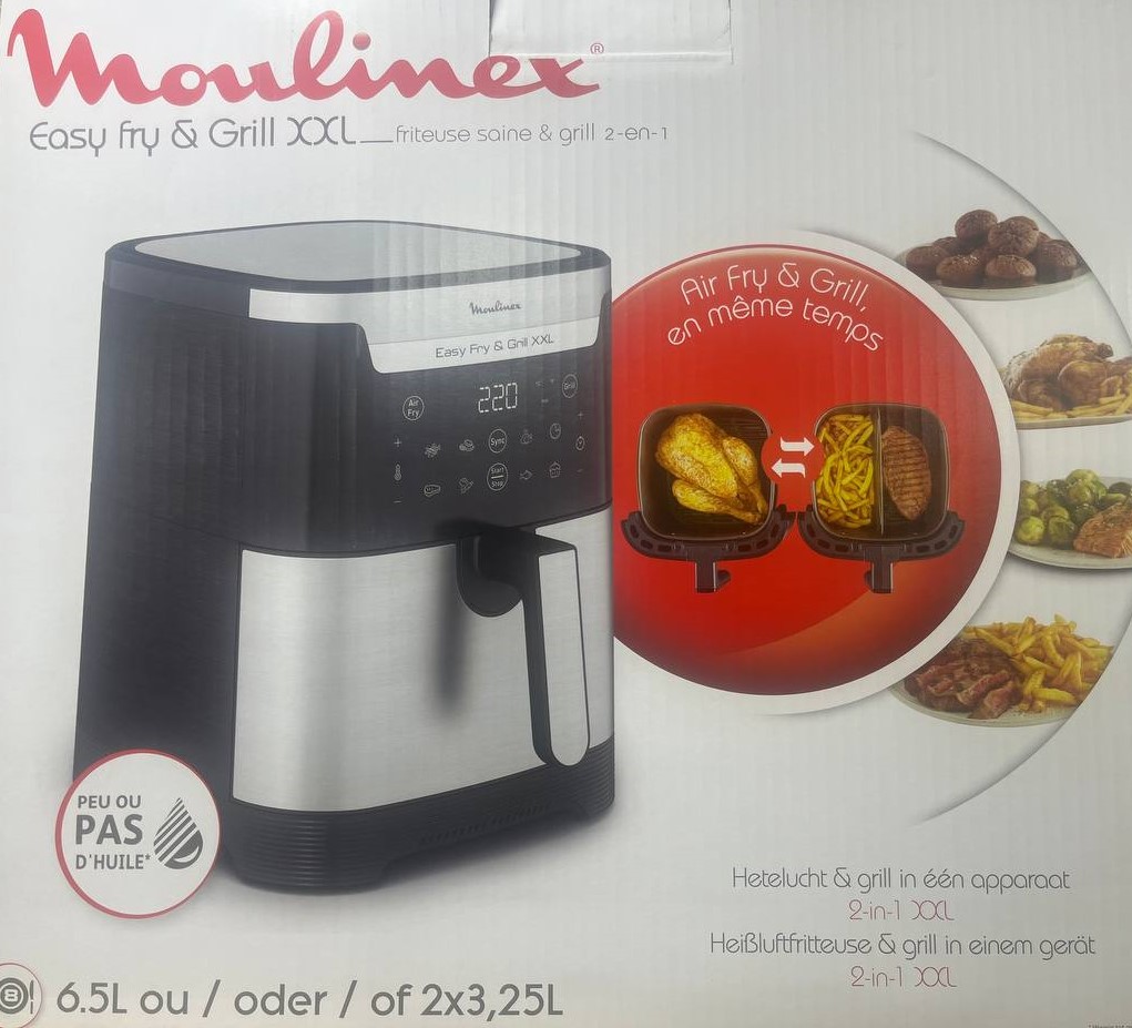 Découvrez l’innovation ultime de Moulinex avec la Easy Fry & Grill XXL ! Cette friteuse sans huile 2-en-1 associe une friteuse à air chaud et un gril XXL dans un seul appareil pour une polyvalence incomparable. Parfait pour cuisiner sainement avec 99% de matières grasses en moins et pour régaler toute la famille avec des résultats toujours dorés et croustillants 🌟.