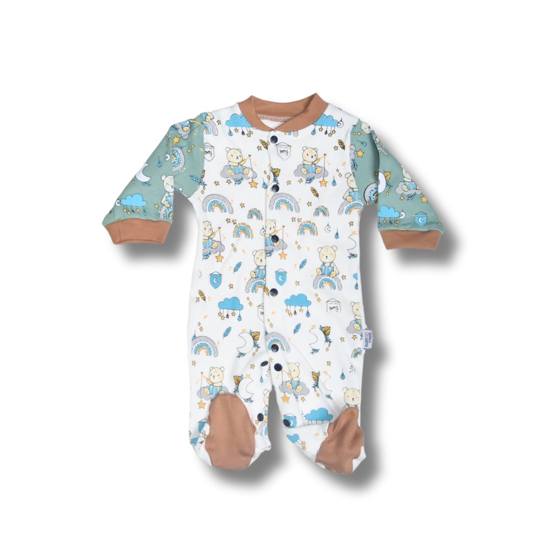 - Fermeture : Les boutons-pression diagonaux, allant de l’épaule gauche à la jambe droite, facilitent l’habillage rapide et le changement de couche, rendant cette grenouillère aussi pratique qu’esthétique. ⏳🧷