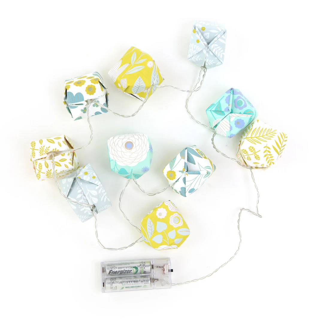 Retrouvez donc sur le blog le tutoriel de la guirlande lumineuse ! Pour ce modèle de guirlande, nous vous recommandons d’utiliser des papiers origami de 15cm par 15cm.