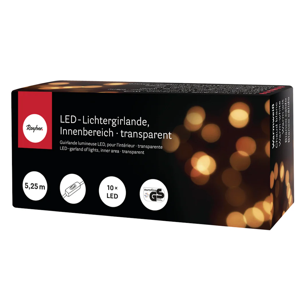 Guirlande Lumineuse – 10 LED, 5m25 – Transparent, Avec Interrupteur