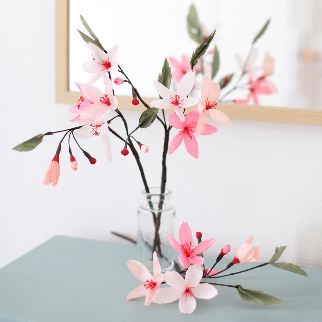 Apprenez à réaliser trois ravissantes branches de cerisier en fleur en papier crépon pour décorer et apporter une touche nippone à votre intérieur !