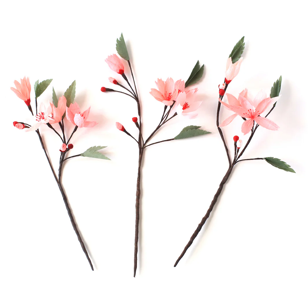 Kit 3 Branches de Fleurs de Cerisier en Crépon
