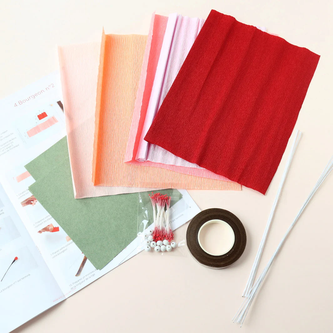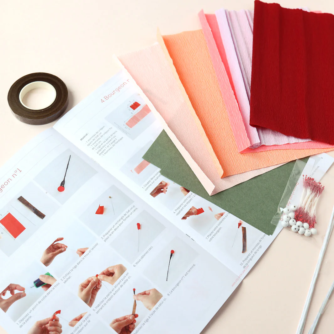 Découvrez nos autres « Kits Bouquet et Fleurs » en papier crépon et papier japonais pour apprendre à réaliser une large variété de fleurs en papier !