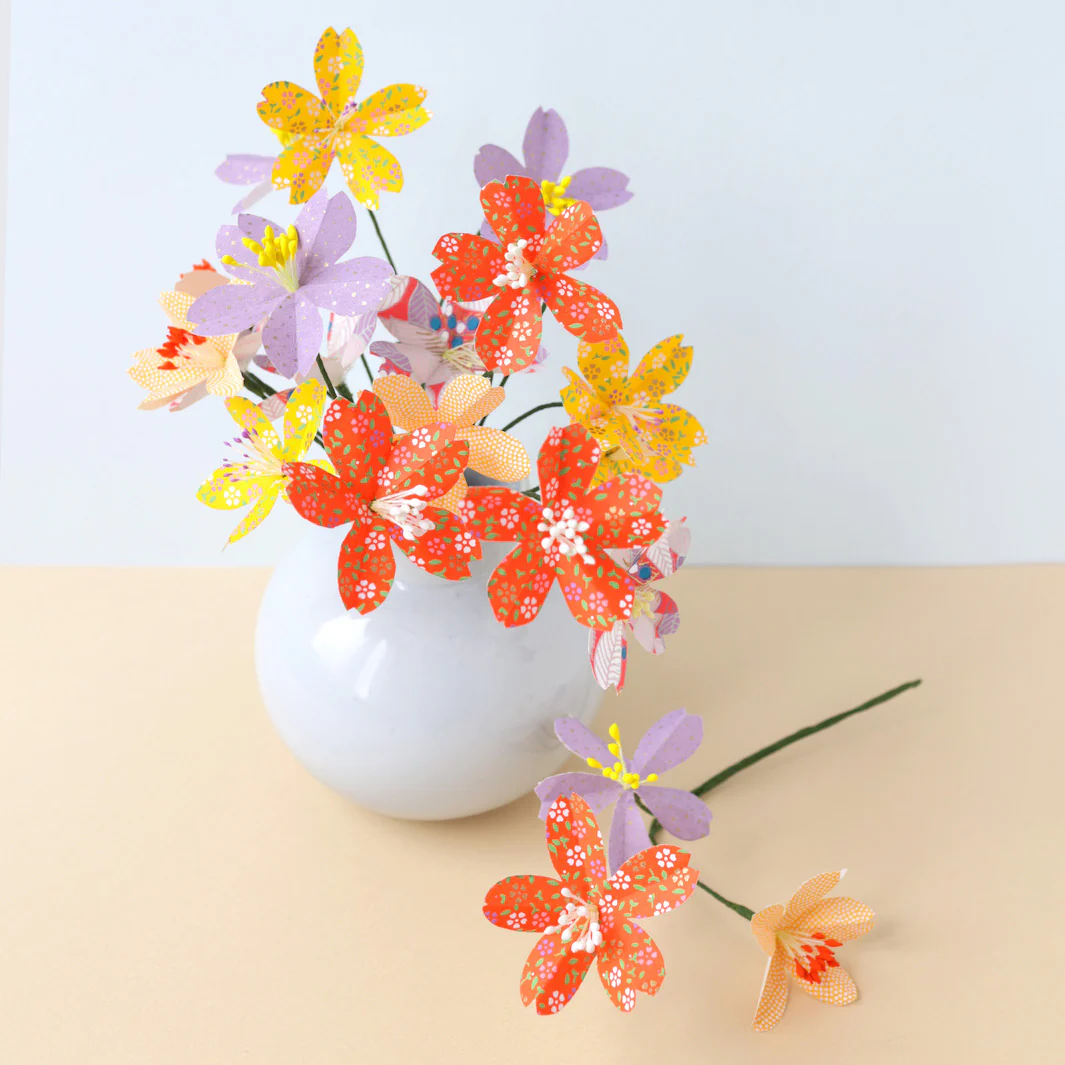 Sur notre blog, découvrez le tutoriel de la fleur de cerisier. Découvrez également nos autres kits de fleurs en papier japonais et papier crépon.
