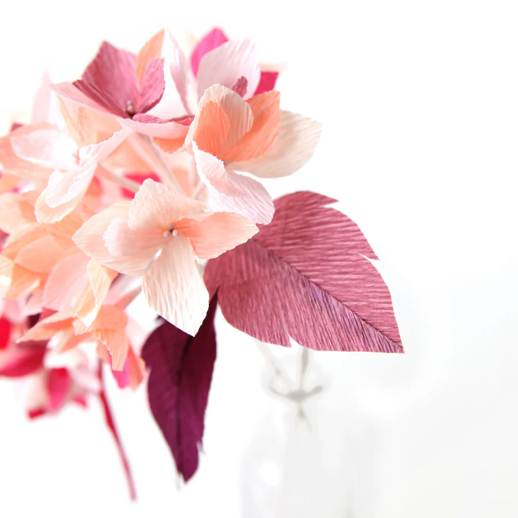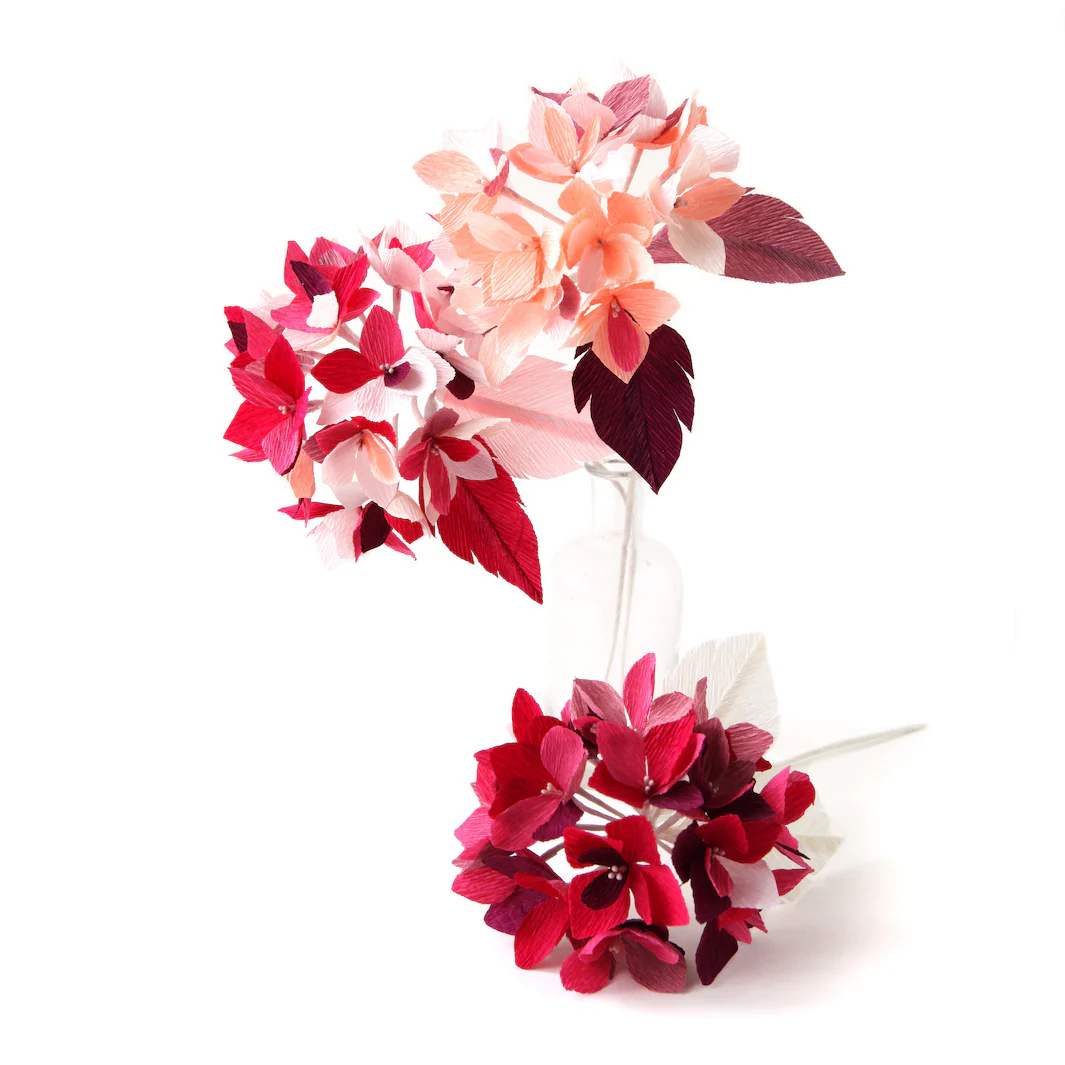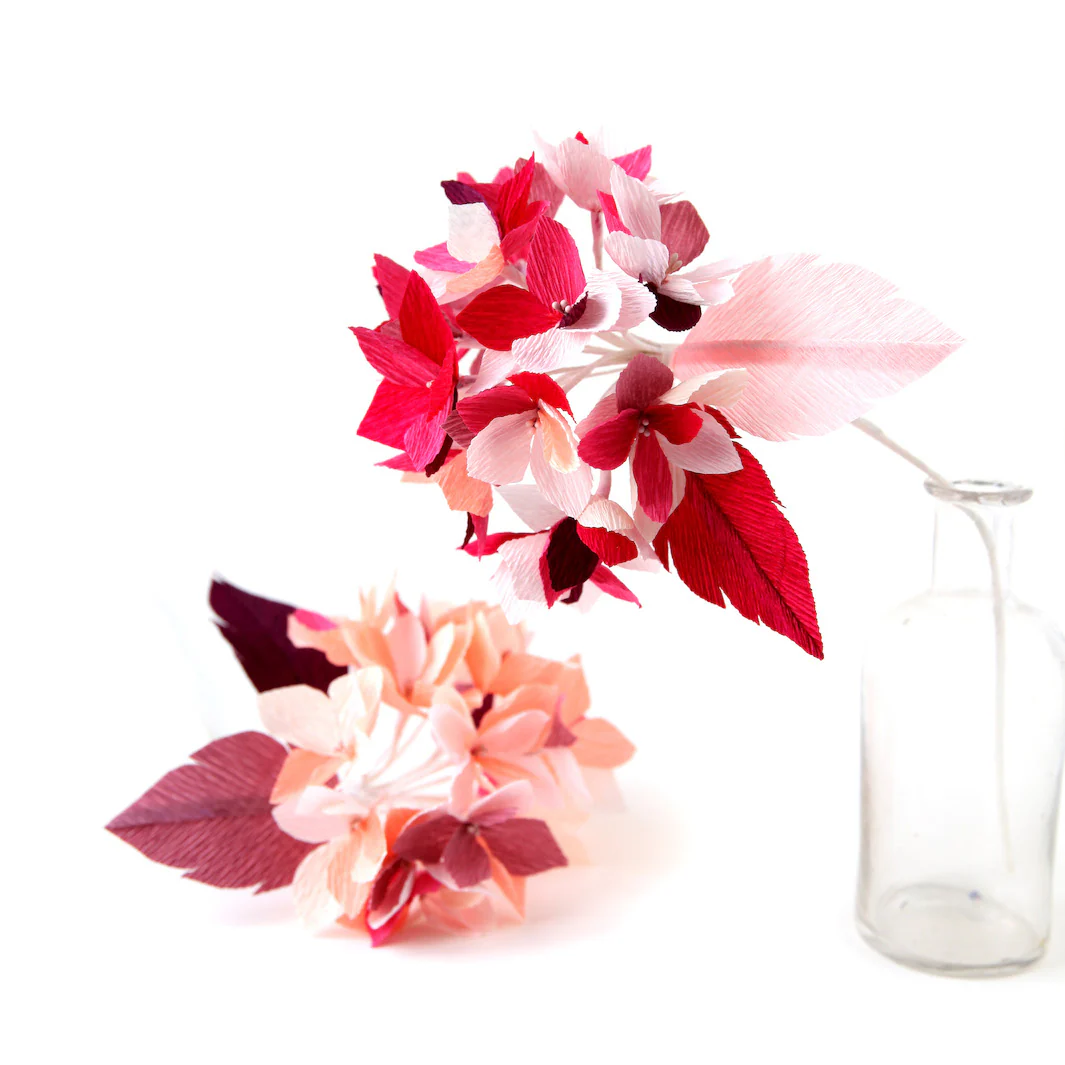 Ce joli kit créatif pour apprendre à réaliser trois boules d’hortensia en papier crépon dans différents tons rose clair, fuchsia, rouges, bordeaux et crèmes, de la gamme « Grenat », a été imaginée par Adeline !