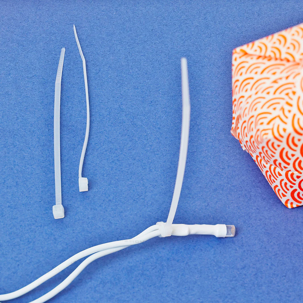 Lot de 10 colliers de serrage en plastique. À utiliser lors de la réalisation de la guirlande lumineuse en origami afin de bloquer et maintenir la led à l’intérieur du cube de papier japonais.