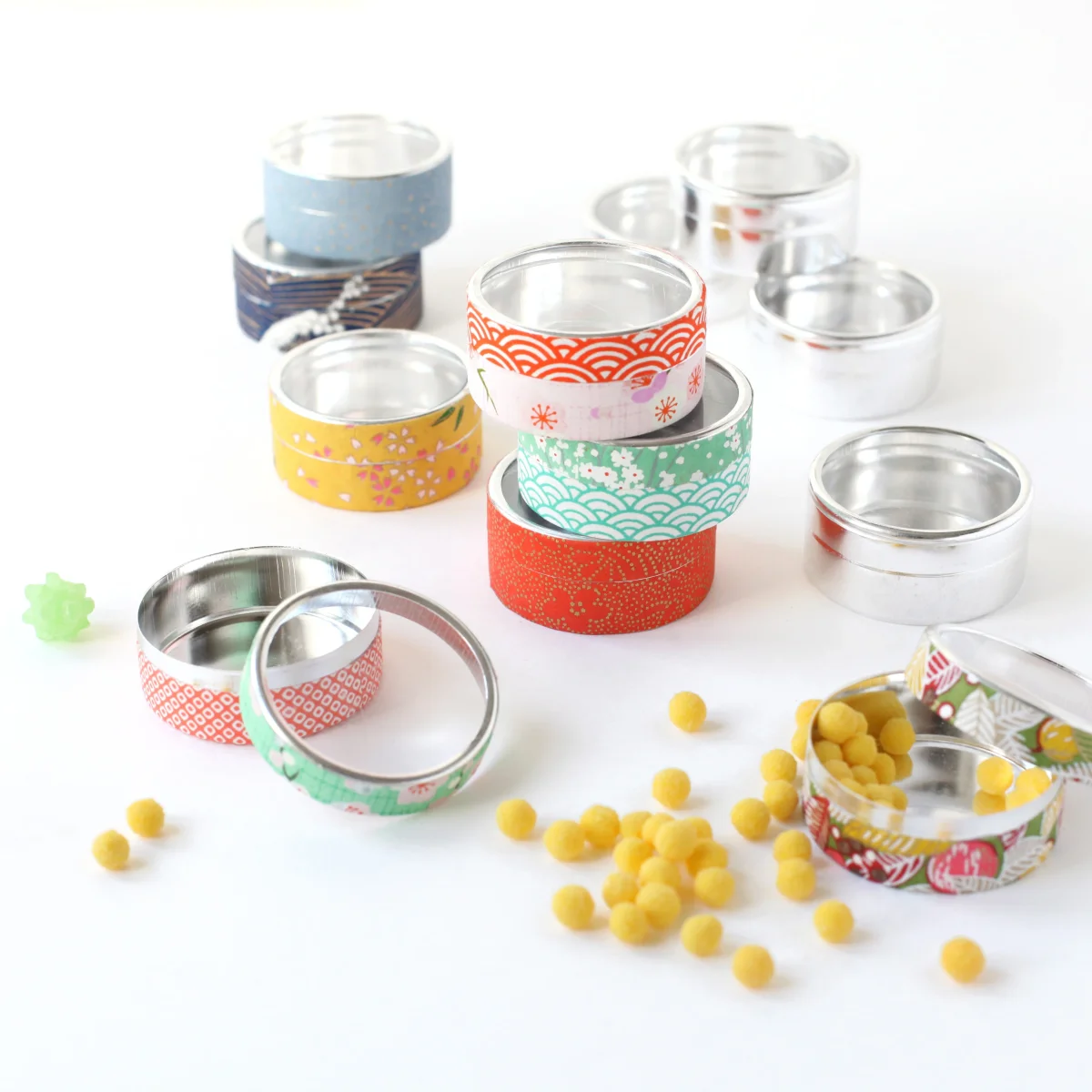 Dimensions des boîtes : 5cm de diamètre et 2,5cm de hauteur