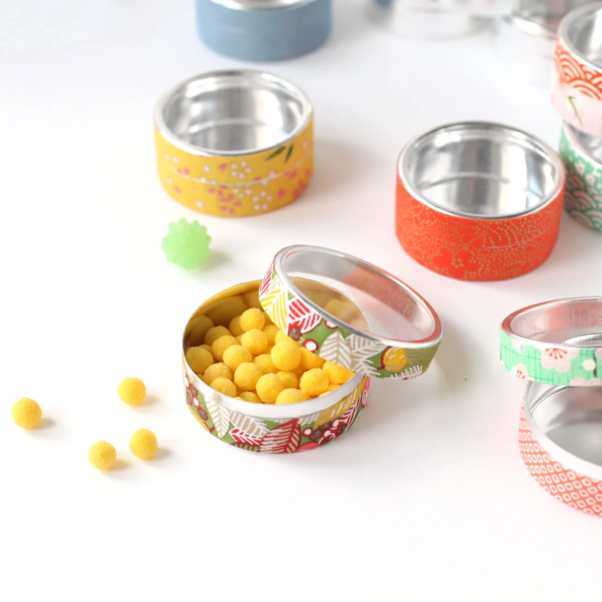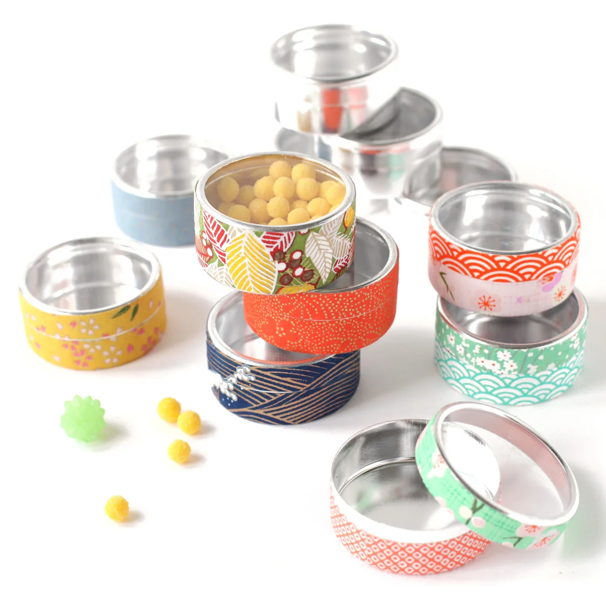 Lot de 12 petites boîtes en métal de la marque belge Artémio. Idéales pour ranger perles, sequins, boutons et autres petites fournitures de loisirs créatifs ! Dimensions des boîtes : 5cm de diamètre et 2,5cm de hauteur