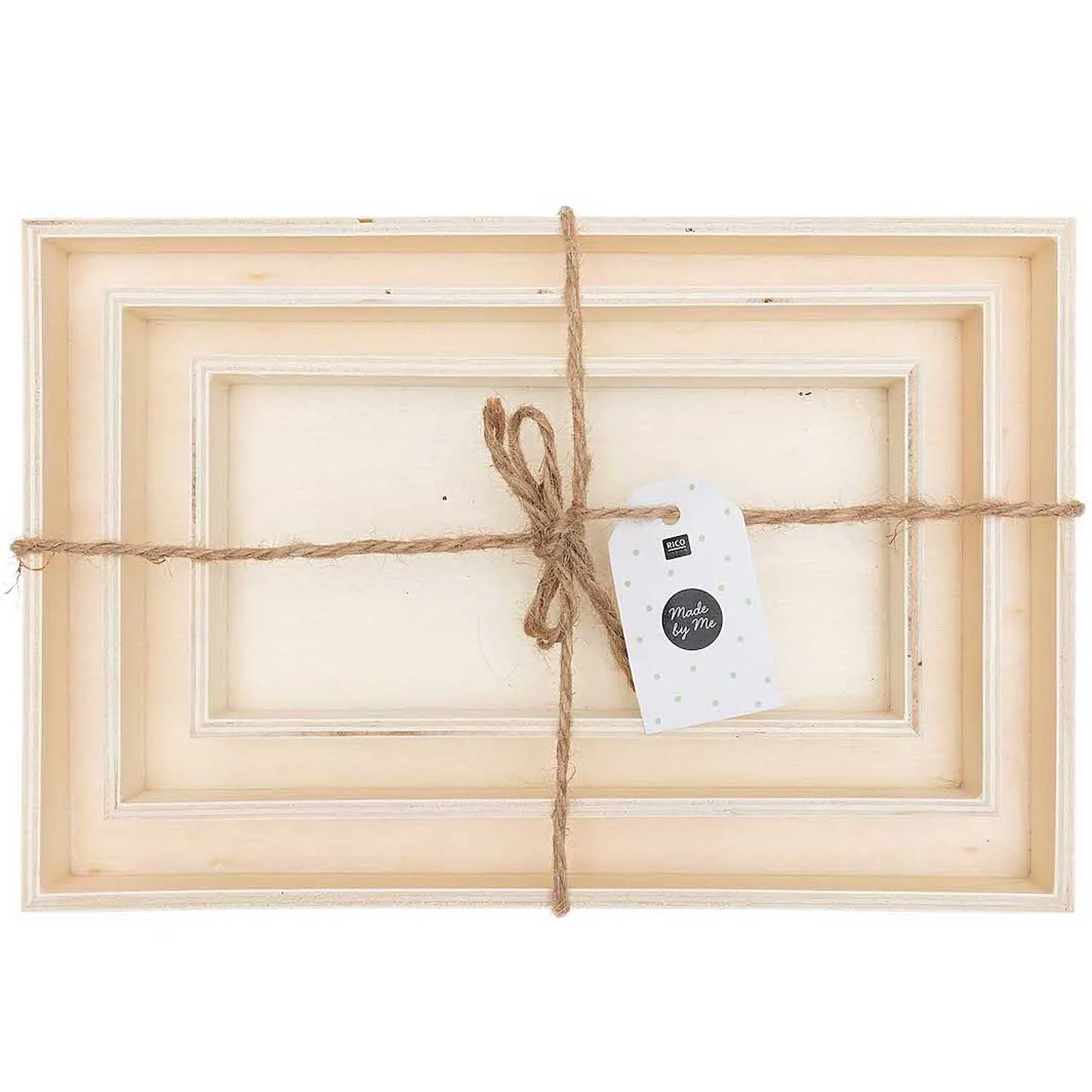 Ce lots contient 3 plateaux empilables en bois naturel non vernis de la marque allemande Rico Design.