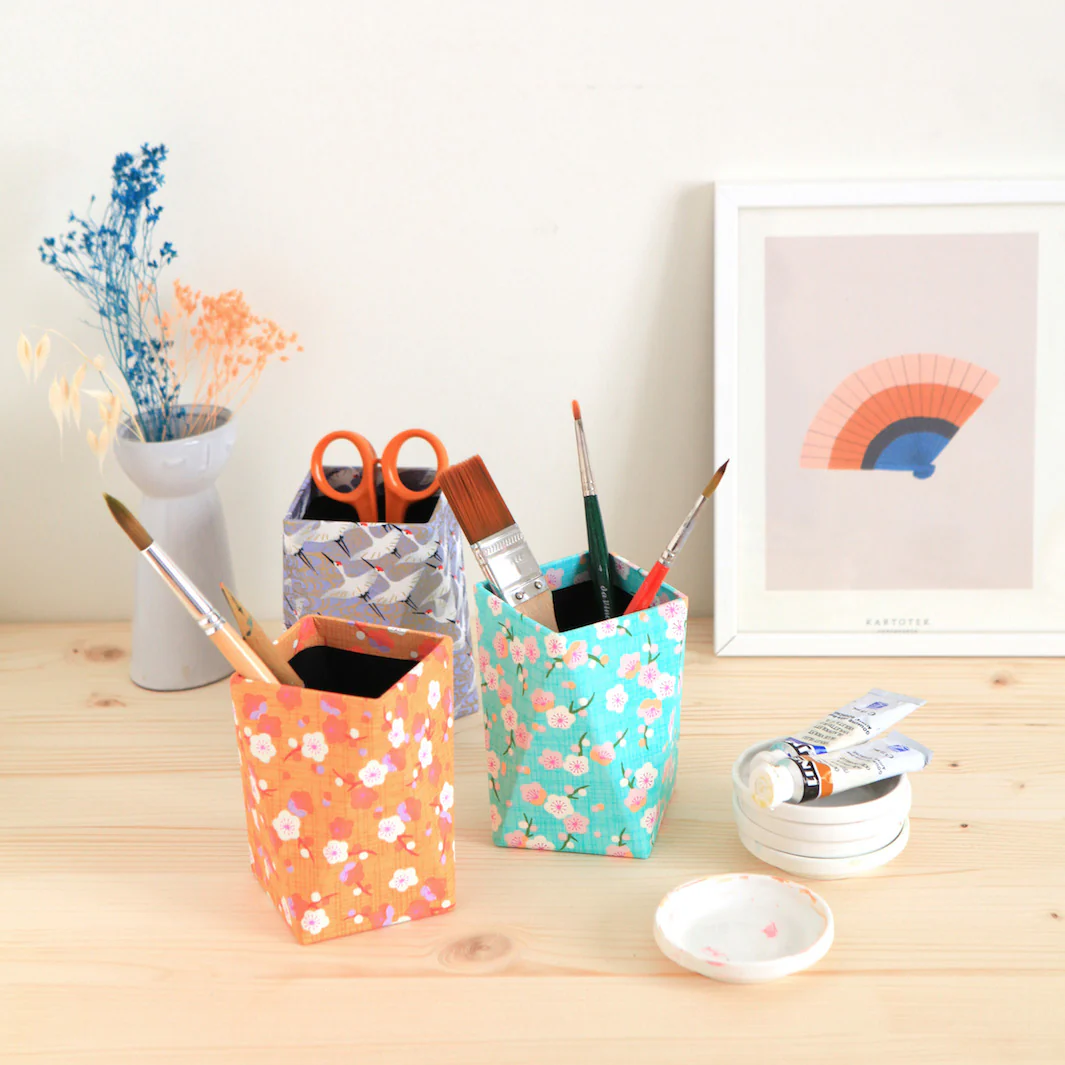 Découvrez également notre sélection de pots à crayons design déjà habillés par nos soins de papiers japonais dans notre atelier à Paris !