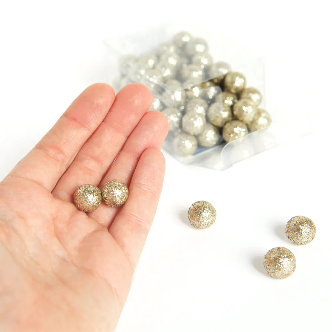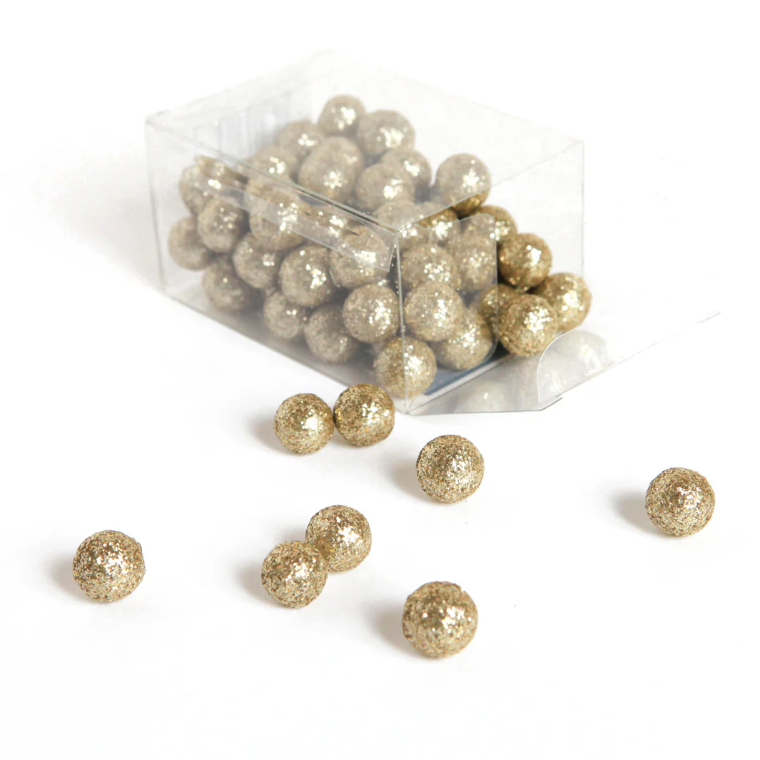 Lot de 60 petites boules de polystyrène dans les tons dorés, cuivrés.