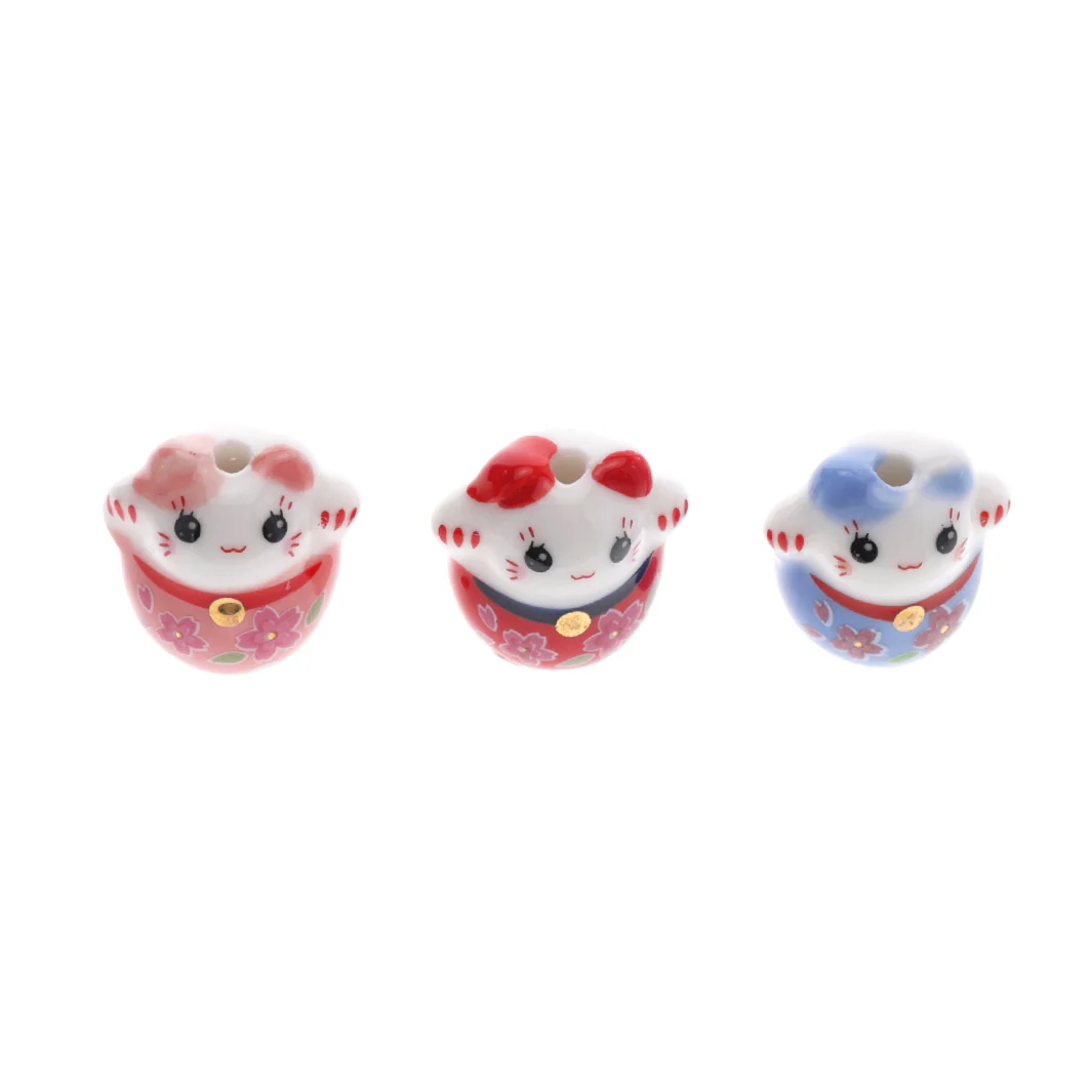 Ces adorables perles en céramique en forme de grand maneki-neko (porte-bonheur japonais en forme de chat, apportant la bonne fortune) seront idéales suspendues à une guirlande d’origami ou montées en bijoux par exemple. Elles pourront également vous servir de petits grigris !