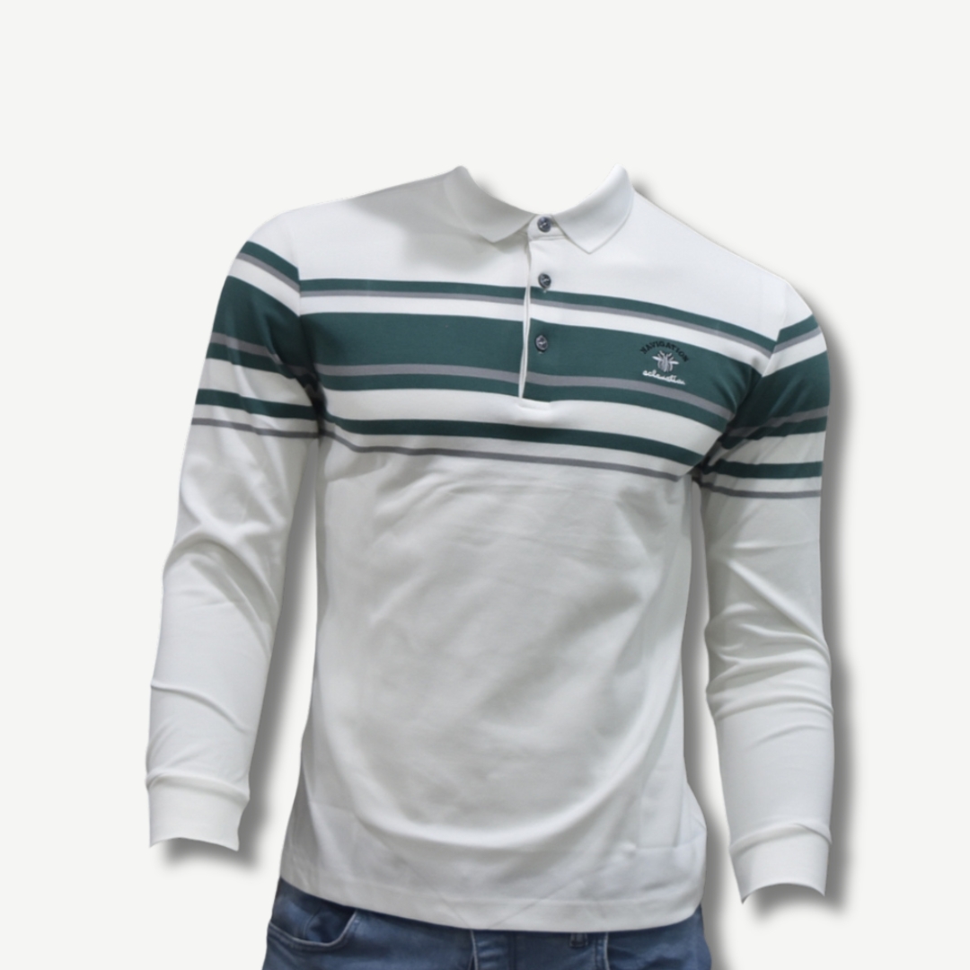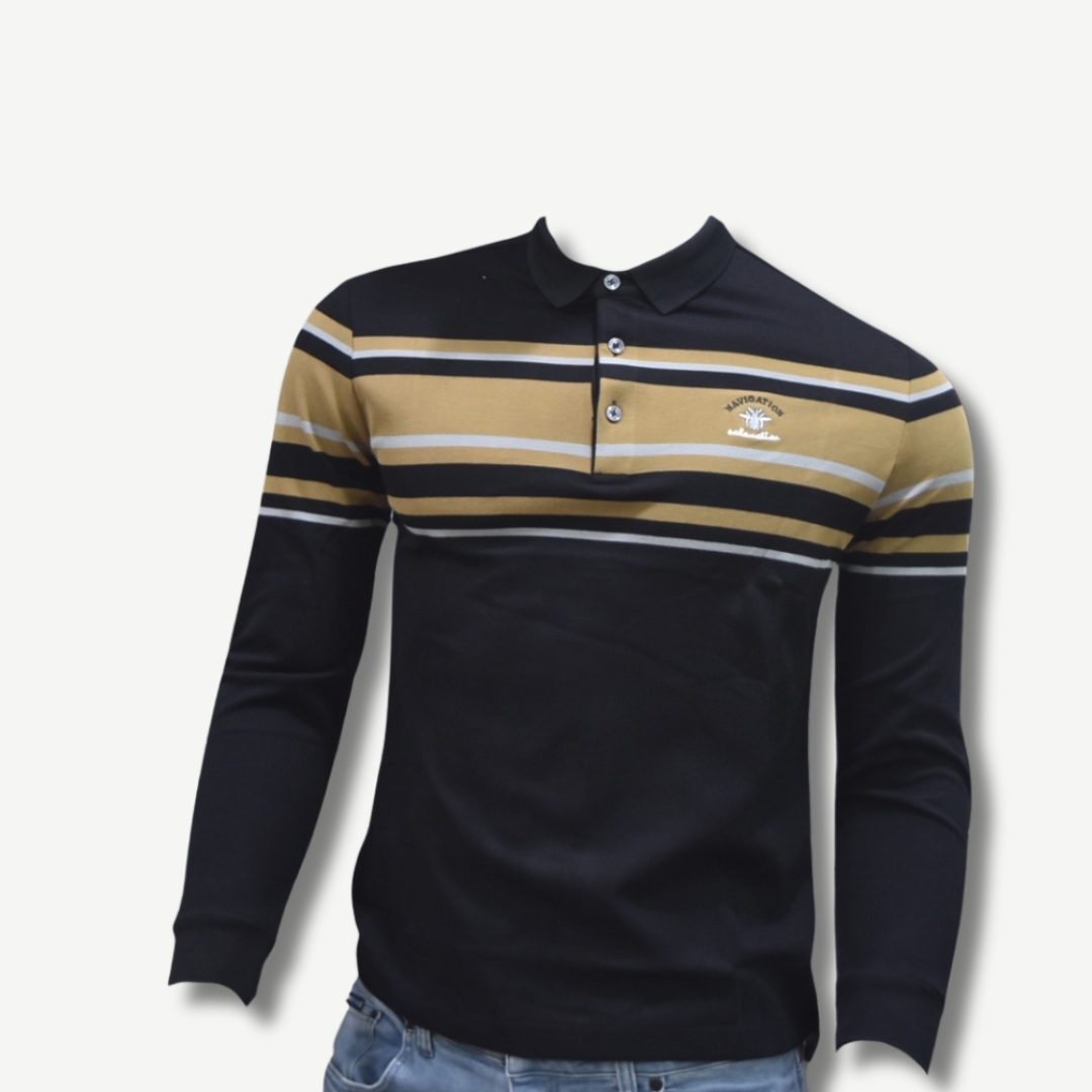 🔹 Design : Polo à manches longues avec des rayures élégantes traversant le torse. Son col à trois boutons lui donne un aspect à la fois décontracté et raffiné 👕