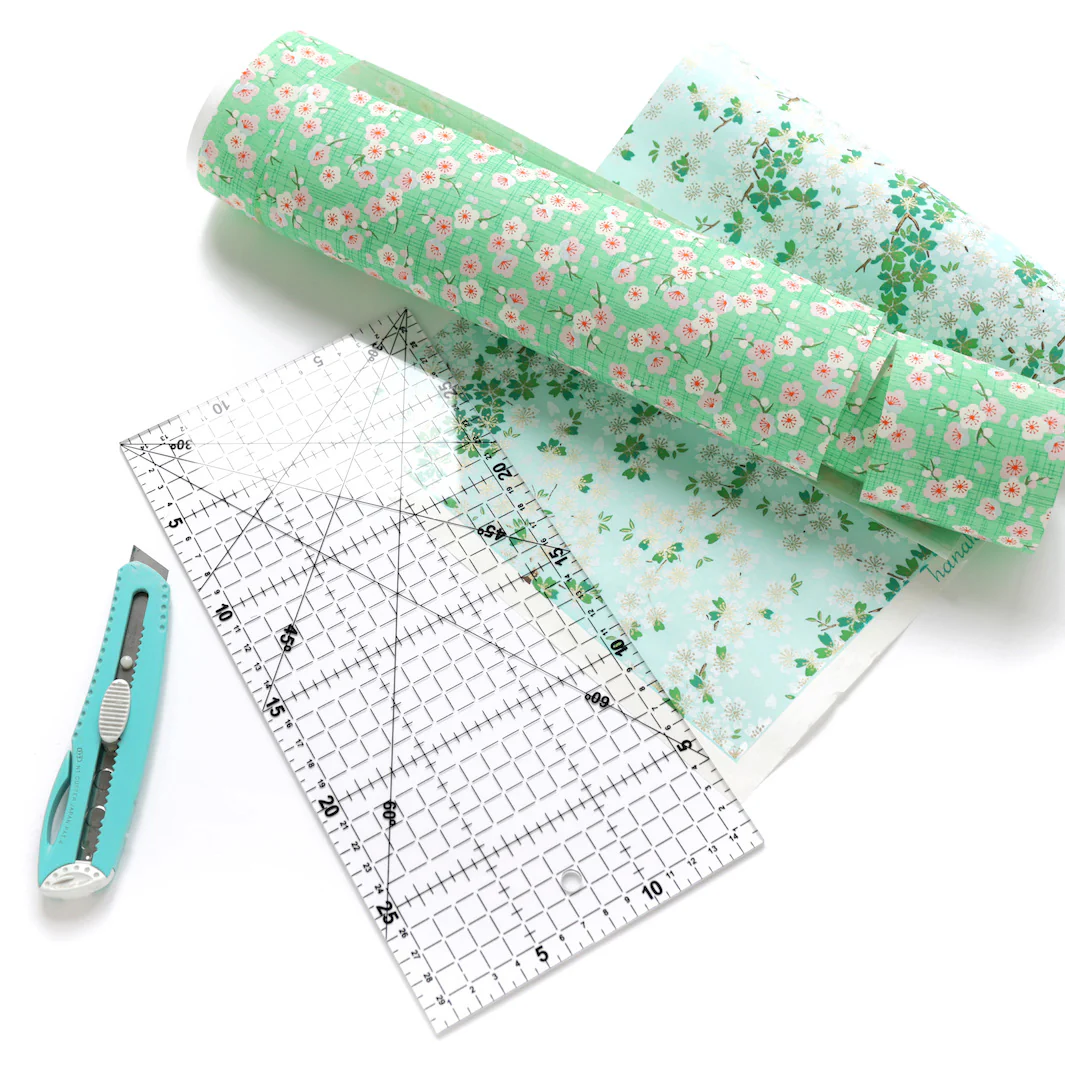 Cette règle de découpe, utilisée initialement pour le patchwork, est idéale pour la découpe du papier japonais.
