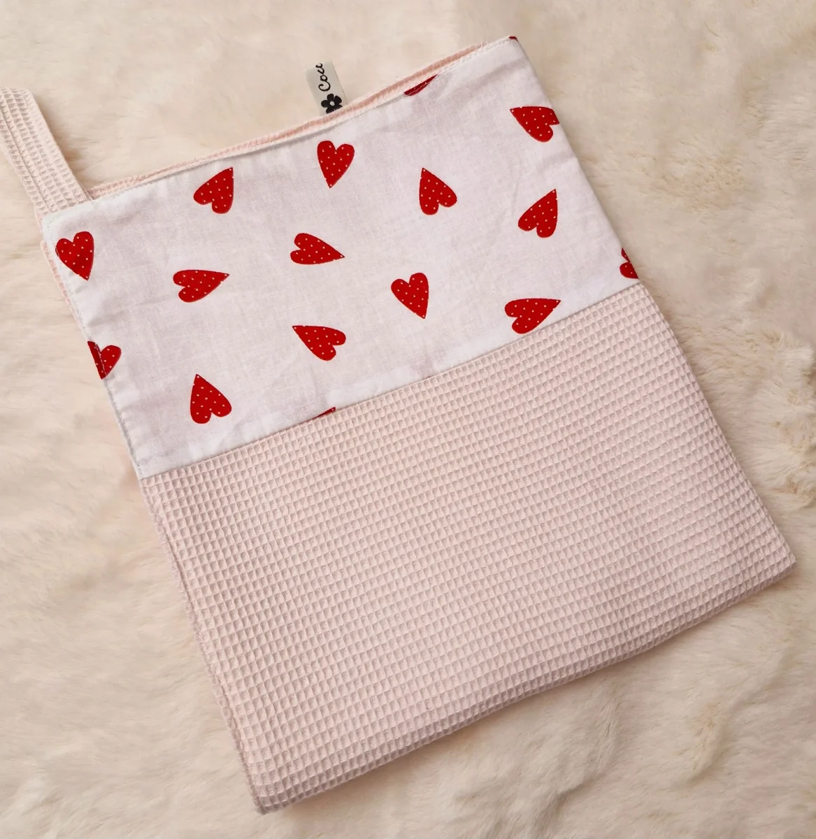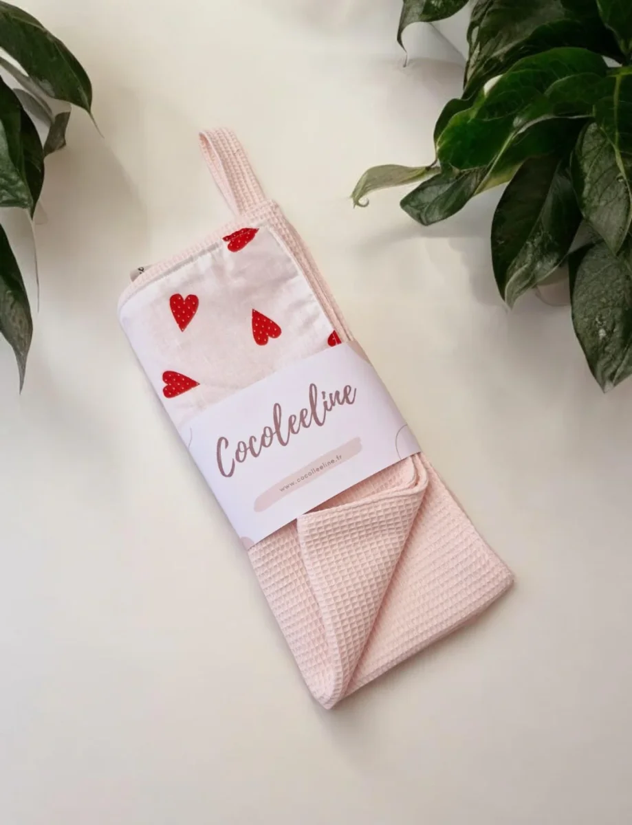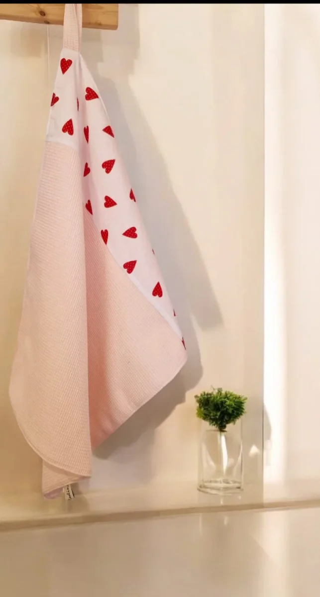 Apportez une touche de charme à votre cuisine avec ce joli torchon en nid d’abeille rose, orné d’un motif cœur délicat. Son design mignon et romantique en fait un accessoire aussi pratique qu’élégant pour votre espace culinaire.
