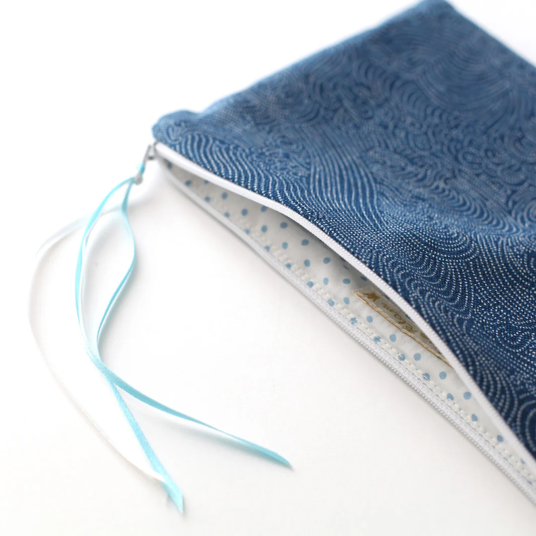 Trousse Plate en Tissus Japonais – Vagues Réalistes – Bleu