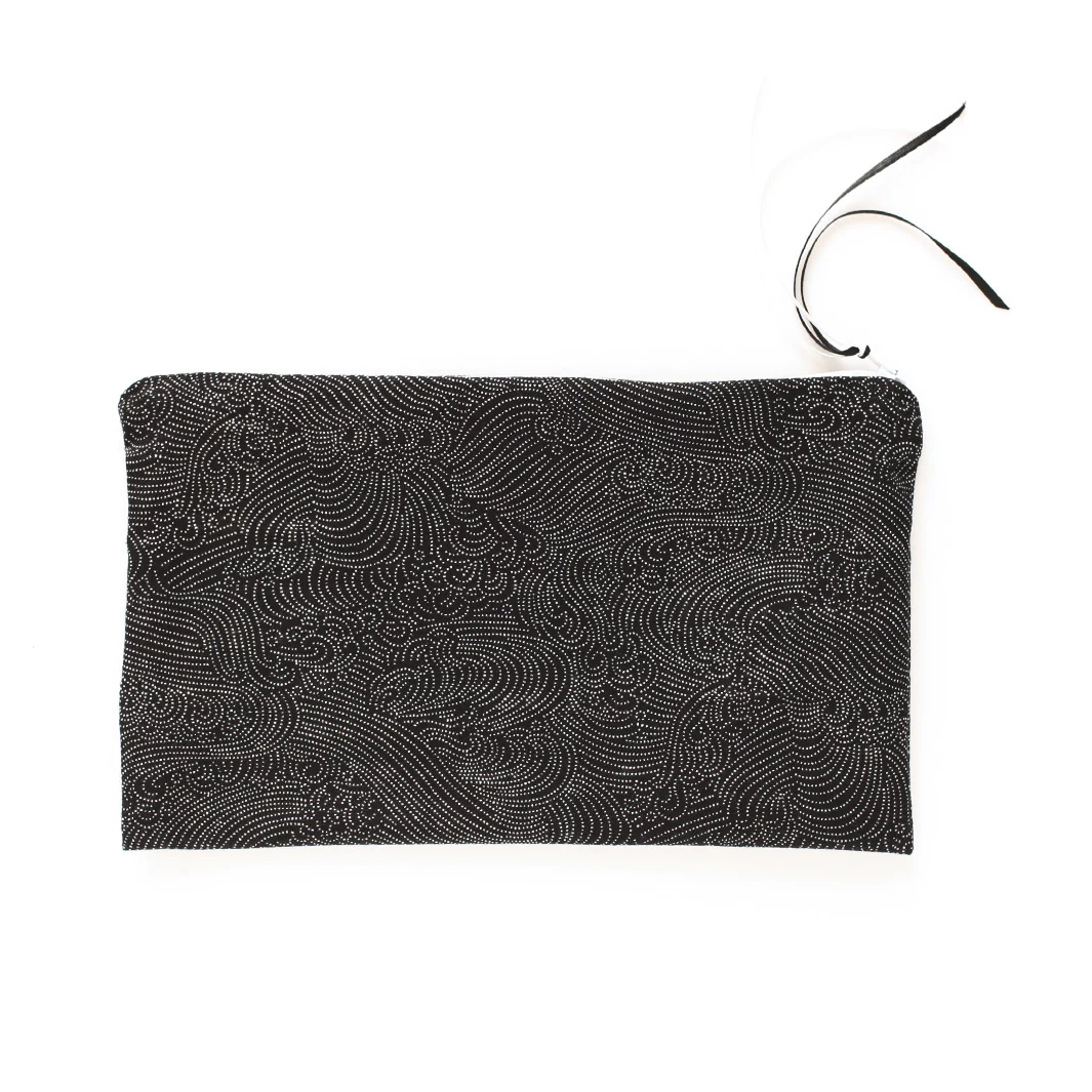 Trousse Plate en Tissus Japonais – Vagues Réalistes – Noir